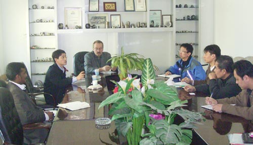 2007年10月19日歐洲客戶來(lái)公司考察,洽談轉(zhuǎn)盤軸承項(xiàng)目。
