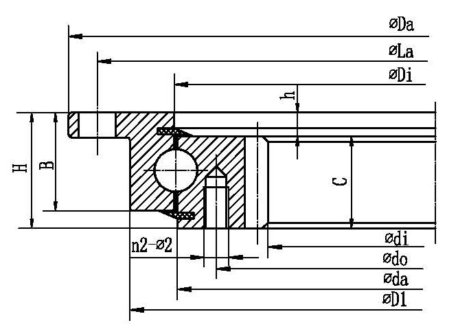 世必愛帶法蘭盤四點接觸球轉盤軸承為輕型轉盤軸承,裝配高大約56mm,由于產(chǎn)品法蘭盤較薄,因此很容易傾斜,安裝時需要特別小心。