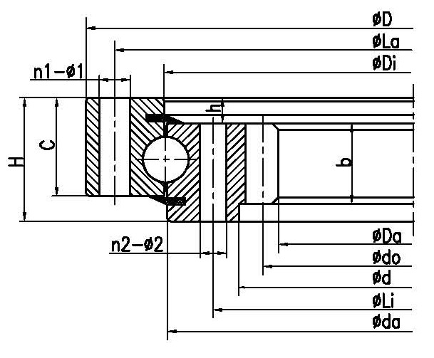 帶內(nèi)齒四點(diǎn)接觸球轉(zhuǎn)盤(pán)軸承由內(nèi)齒和主機(jī)主軸嚙合,帶動(dòng)主機(jī)運(yùn)動(dòng)。